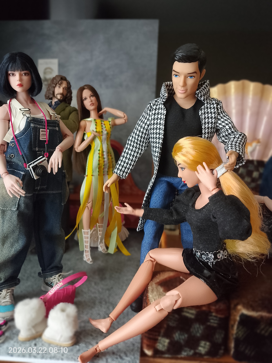 Главной героиней сегодняшней полочки является Ариша, которая, как мне кажется, не в духе и что-то эмоционально высказывает Сергею. Может, ссора как-то связана с уггами? 🤔 Дескать, купил ты мне угги, когда пора босоножки примерять...