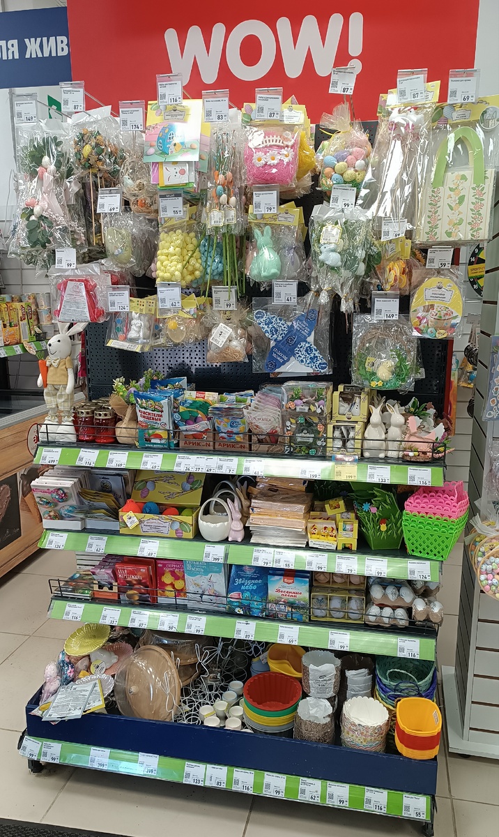В прошлой статье обещала вам показать витрину- полочки с товарами к Пасхе, как выглядят со стороны.
