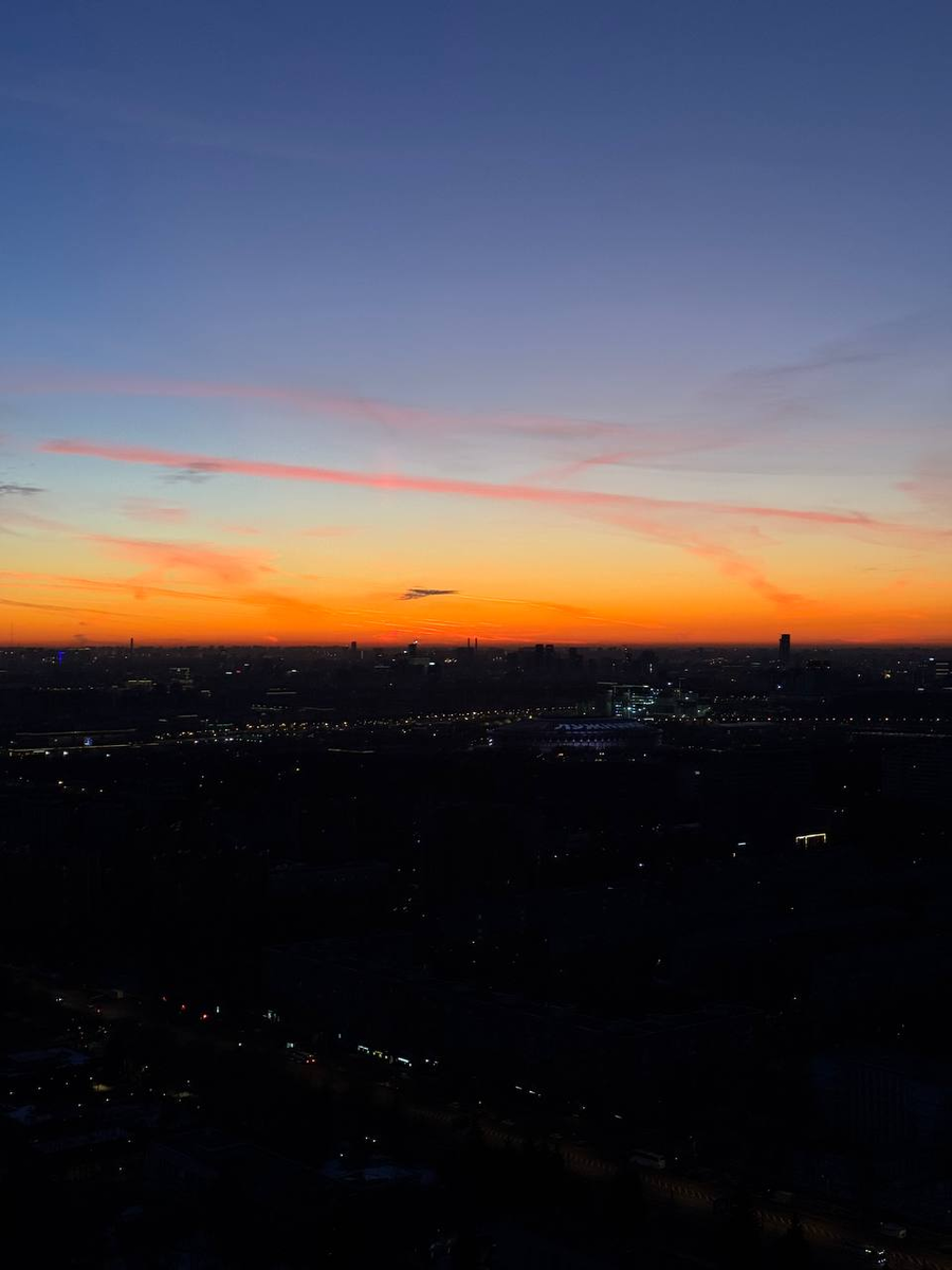 Привет, друзья. В декабре мне на день рождения сестра подарила встречу рассвета на крыше (компания "Культ крыш"). И вот мы с моей любимой Викторией решили, что пора приветствовать солнце на высоте 40 этажа (Новолетие опять же было пару дней назад). Проснулись, утеплились (всё-таки ночью ощутимо холоднее, чем днём) и около двух часов ночи выдвинулись: восход в 6.28, а пешком до места икс идти 16 км (да, время взяли с запасом). К подобным расстояниям нам не привыкать, тем для бесед достаточно, так что шли, разговаривали, наслаждались отсутствием людей и машин. В 6 утра мы уже были на 40-м этаже, фотографировались, пили чай с ватрушками и наслаждались видом. А насладиться определённо было чем: А потом уже и солнце посмотрело на часы. Посмотрело и решило, что пора: Конечно, фотографии не передают и сотой доли той красоты, что мы увидели, но шли мы туда всё-таки не столько за фотографиями, сколько за эмоциями! А восход солнца под чай с ватрушками на 40 этаже прекрасен настолько, что с эмоц