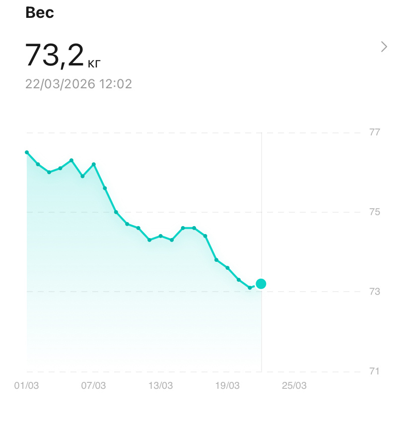 Что имеем сейчас? 23 марта, вес до 74 кг.