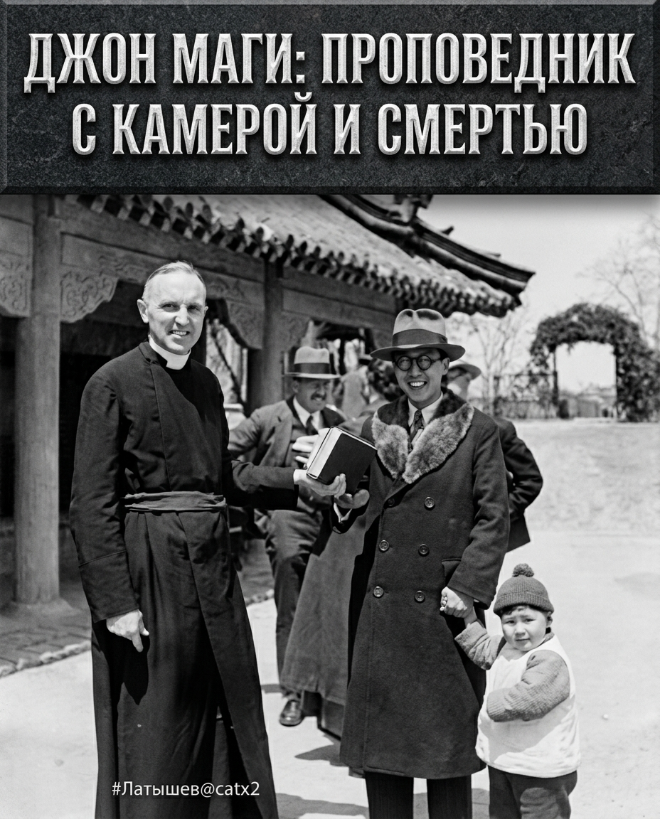 Джон Маги родился в 1884 году в Питтсбурге, в семье, которая принадлежала к самой верхушке американского финансового олимпа. Его отец был совладельцем сталелитейной империи, и юный Джон мог бы выбрать карьеру банкира или промышленника. Однако он пошёл другим путём: окончил Йельский университет, затем духовную семинарию в Массачусетсе и в 1912 году, в возрасте двадцати восьми лет, отправился в Китай. Для обывателя того времени Китай был дикой, опасной страной на краю света. Но для Маги это было место служения. Он поселился в Нанкине, который вскоре стал столицей нового Китая, и тридцать лет проработал там священником Епископальной миссии. Маги принадлежал к той редкой породе людей, которые не прячутся от мира в церкви, а идут в мир с Евангелием в одной руке и помощью в другой. Он был готов брать на себя ответственность.