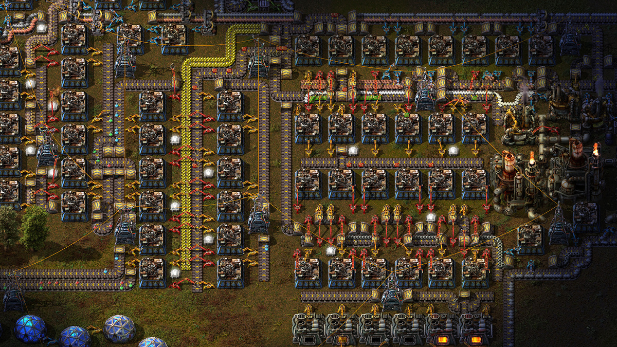 Factorio выглядит как строительный симулятор. Конвейеры, печи, сборочные автоматы. Руда становится пластинами, пластины становятся деталями, детали становятся наукой. Красиво. Логично. Медитативно.