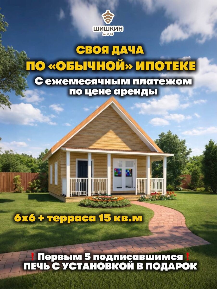 Проект «Дачница» — уютный дом 6×6 с террасой 15 м² по «ОБЫЧНОЙ» ипотеке с комфортным ежемесячным платежом