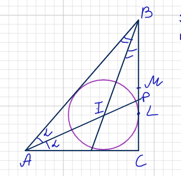 Здравствуйте, дорогие подписчики и гости канала. Предлагаю разбор одной интересной 17 задачи. Условие взято с сайта math100.ru Дан треугольник ABC со сторонами AC = 30, BC = 40 и AB = 50. Вписанная в него окружность с центром I касается стороны BC в точке L, M — середина BC, AP — биссектриса треугольника ABC, O — центр описанной около него окружности. а) Докажите, что P — середина отрезка LM. б) Пусть прямые OI и AC пересекаются в точке K, а продолжение биссектрисы AP пересекает описанную окружность в точке Q. Найдите площадь четырёхугольника OKCQ. Первый пункт доказываем, через равенство длин отрезков PL и PM. Ну и применим формулу косинуса двойного угла Сделаем чертеж Докажем, что OKCQ - трапеция То есть четырехугольник OKCQ - трапеция. Нам надо найти KC, например через разность AC и AK, для начала найдем AI и OI. Вспомним свойство биссектрисы. А потом теорему косинусов Ну а теперь проверим, получится ли треугольник AOI прямоугольным, если да, то AK легко находится из треугольника