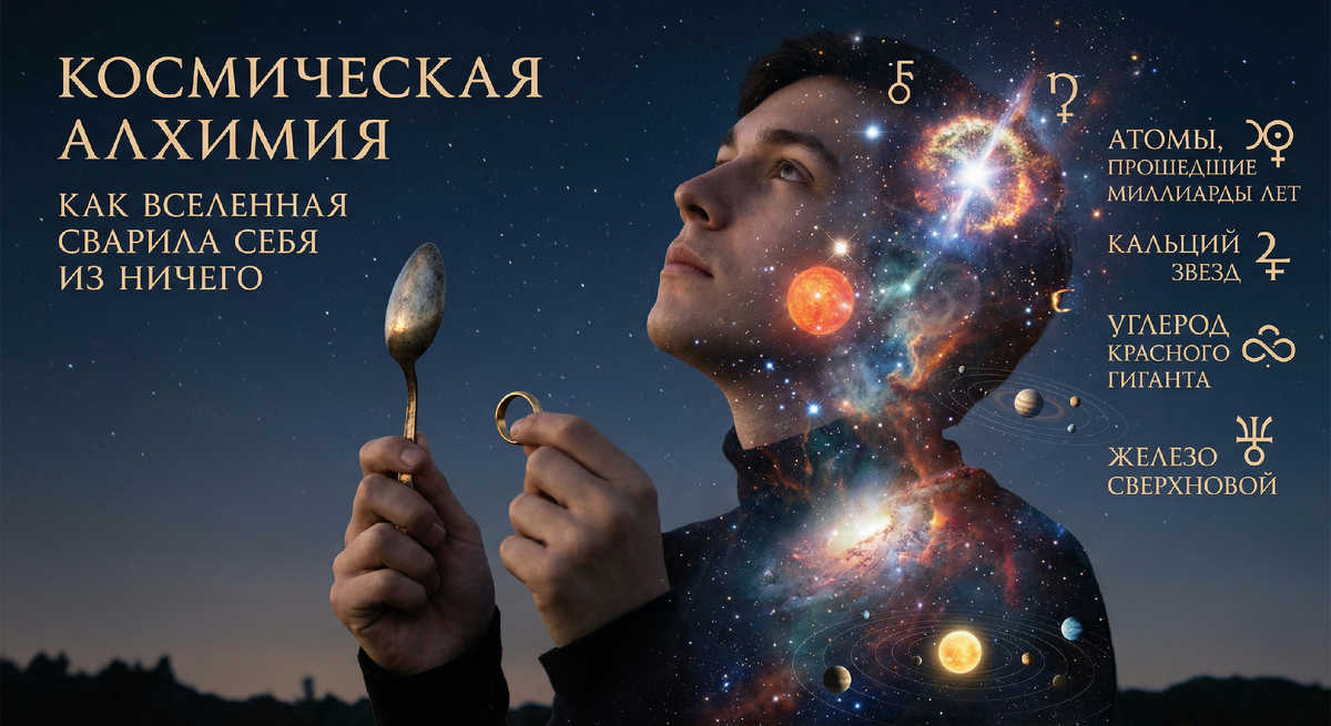 Вы когда-нибудь задумывались, держа в руке обычную металлическую ложку или глядя на золотое кольцо, что эти атомы прошли путь длиной в миллиарды лет, полный катастроф космического масштаба? Представьте: атомы кальция в ваших костях когда-то были выплавлены в недрах древней звезды, углерод в вашей ДНК рожден в термоядерном огне красного гиганта, а железо в вашей крови выброшено в космос при взрыве сверхновой звезды.