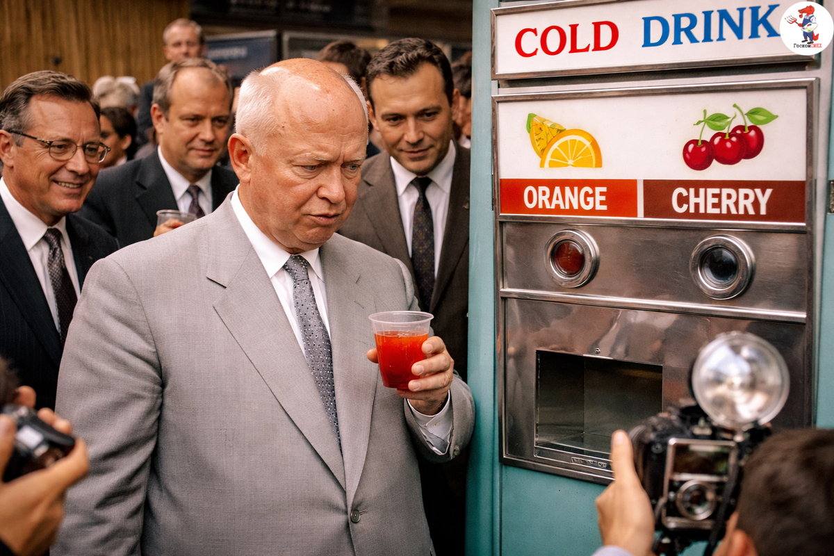 В 1959 году первый секретарь ЦК КПСС Никита Хрущёв совершил исторический визит в Соединённые Штаты. Это была первая поездка советского лидера такого уровня в Америку. В течение почти двух недель Хрущёв посетил несколько городов, побывал на заводах, фермах, в университетах и на выставках новейших достижений американской техники и промышленности. Во время одной из демонстраций ему показали необычную на тот момент новинку — автомат по продаже газированной воды. Подобные автоматы уже существовали и в СССР, однако американская модель имела оригинальную особенность: она автоматически определяла, кто стоит перед ней — мужчина или женщина. Мужчинам аппарат наливал газированную воду с апельсиновым сиропом, а женщинам — с вишнёвым. Когда Хрущёв подошёл к устройству, автомат выдал ему стакан газировки с вишнёвым сиропом. Советский лидер попробовал напиток, затем решил повторить эксперимент — и снова получил «женский» вариант. По воспоминаниям очевидцев, Никита Сергеевич был заметно удивлён и даже