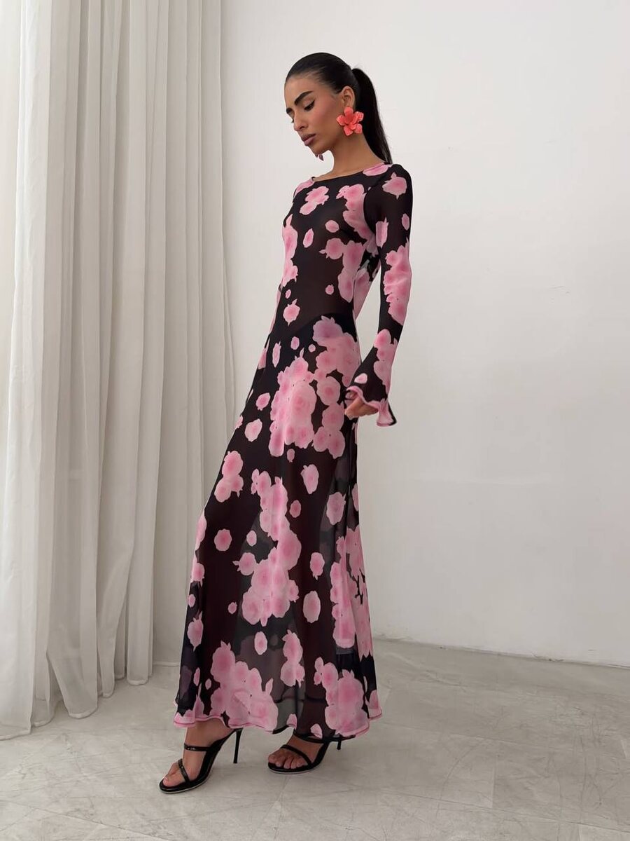 Платье макси в цветочный принт из легкой струящиеся ткани. Идеально для весеннего настроения.