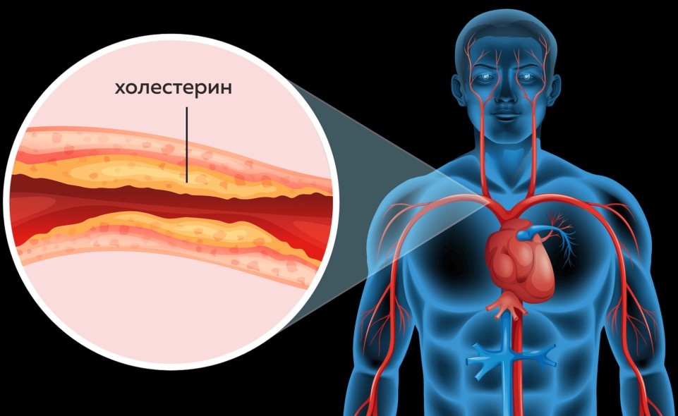 – холестерин откладывается в стенках артерий, образуя атеросклеротические бляшки;