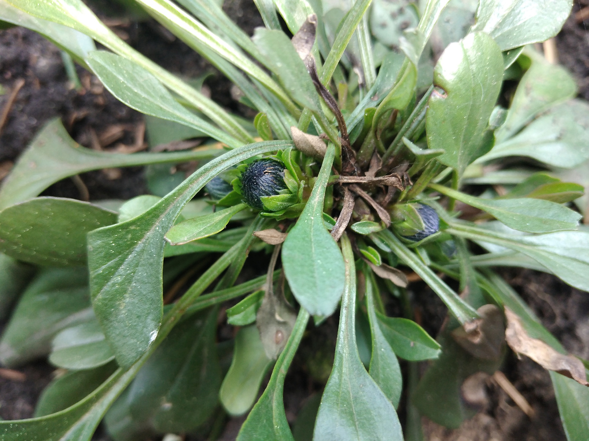 Вырастила эхинацею. Тоже всходы были хорошие. Цвела большими цветами. Не уменьшались в ладони моей. К сожалению, это фото не нашла. Цвела до заморозков. На фото последний бутон. Стебли уже желтые, засыхают.