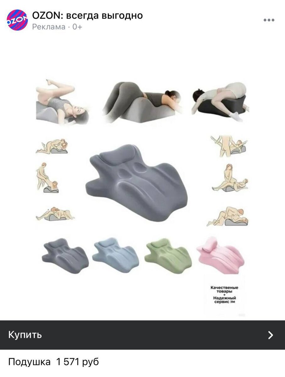 + Лента VK. Реклама Ozon. И маркировка 0+. Я, конечно, не эксперт по возрастной классификации контента… но кажется, что в этой рекламе есть нюансы. Интересно, как она проходила модерацию. Хотя, возможно, алгоритм просто увидел слово «подушка» и решил, что это что-то максимально безопасное для детей. Marketplace_biz - отдай свой буст каналу