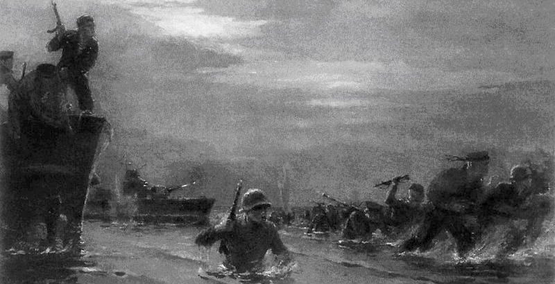 Но главное - и самое горькое - случилось в Восточной Пруссии. В апреле 1945-го батальон майора Дорофеева штурмовал Кёнигсберг. А дальше было совсем отчаянное дело - десант на косу Фрише-Нерунг, теперь это Балтийская коса. 25 апреля его передовой отряд переправился через пролив и зацепился за берег. Бой вышел тяжёлый, Дорофеева ранило - третий раз за войну, - но он остался в строю.