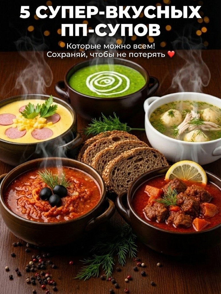 Собрала подборку супов, которые легко заменяют второе блюдо и отлично насыщают, но с минимальным количеством жиров😌