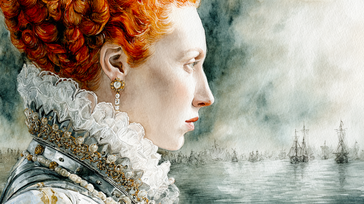 Немолодая рыжеволосая женщина на белом коне медленно едет вдоль рядов ополченцев. Берег Темзы у форта Тилбери, август 1588-го. По поздним описаниям — в белом платье и, возможно, в серебряной кирасе; точные детали её появления уже стали смесью памяти, риторики и легенд. Где-то в Ла-Манше — около ста тридцати кораблей «Непобедимой армады», тридцать тысяч испанских солдат и планы герцога Пармы высадить десант на английский берег.