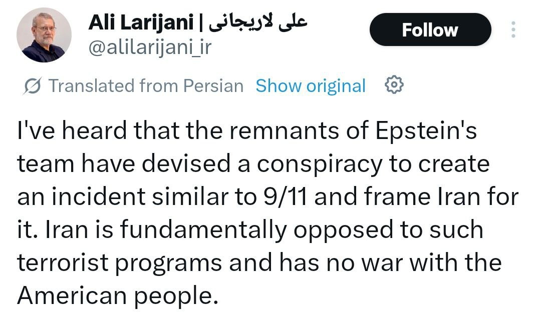 Reports that 'Epstein’s team' US admin could create FALSE FLAG 'incident similar to 9/11' to FRAME IRAN