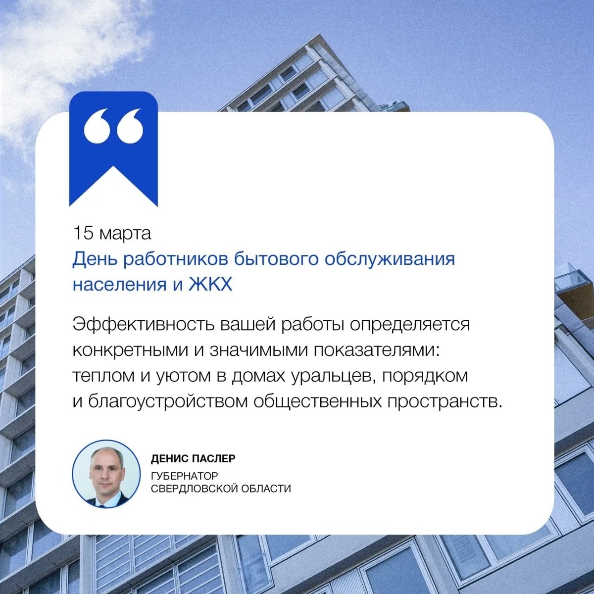 ! ✨ Губернатор Денис Паслер поздравил тех, кто делает нашу повседневную жизнь комфортнее и безопаснее: сотрудников ЖКХ, мастеров бытового обслуживания, сантехников, электриков, дворников и всех, кто заботится о наших домах и городах. Спасибо за ответственность, профессионализм и готовность прийти на помощь в любой ситуации! Источник: ЖКХ Красноуральск Источник: Открыть