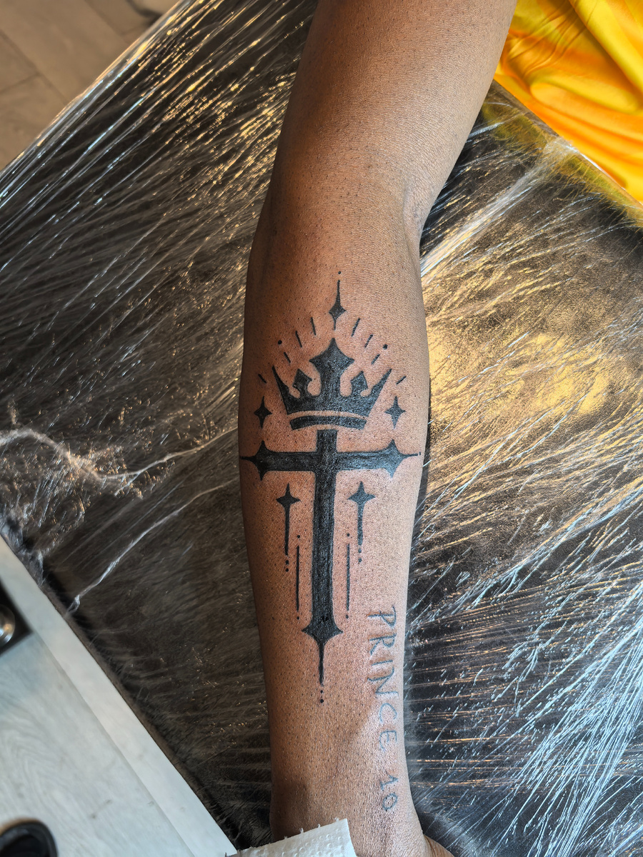 Татуировка, сочетает в себе несколько символов с глубоким значением:
