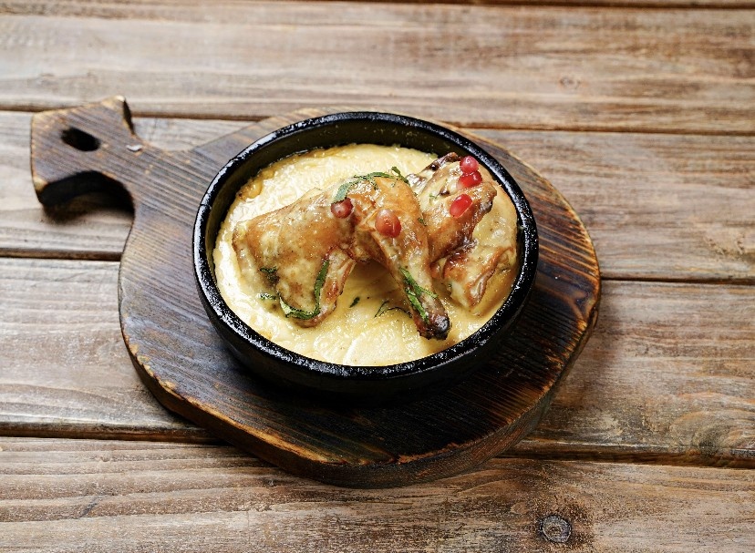 В классическом варианте шкмерули готовится на кеци (глиняной сковороде) и на углях, но в домашних условиях отлично подойдет обычная сковорода или духовка. Главное — молодой цыпленок и качественный чесночный соус.