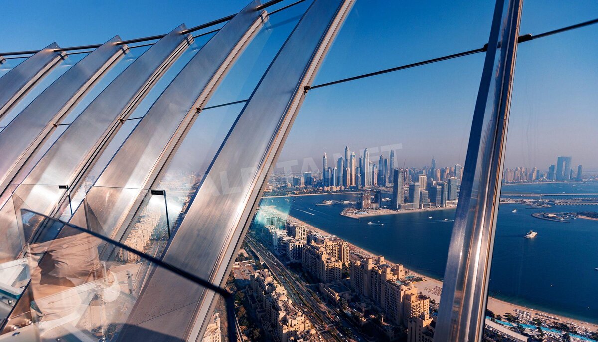 С высоты 240 метров открывается вид на конфигурацию Пальмы, отели Atlantis The Palm и Atlantis The Royal, Персидский залив и небоскребы Dubai Marina. Burj Khalifa видна, но находится на значительном удалении.