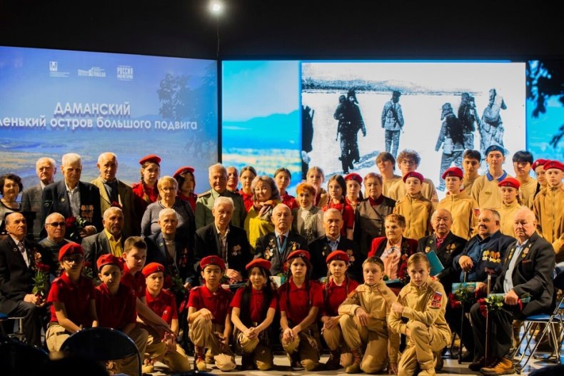 В зале собрались ветераны-даманцы, те, для кого дата 15 марта – не просто страница из учебника истории. Среди почетных гостей были 13 участников вооруженного конфликта на острове Даманский, прибывшие на мероприятие в Исторический парк из пяти муниципальных округов: Долинского, Невельского, Тымовского и Холмского и города Южно-Сахалинска. Также, в качестве почётных гостей присутствовали участник Великой Отечественной войны Василий Николаевич Андреев и бывшая несовершеннолетняя узница фашистских концлагерей Евдокия Родионовна Столбоушкина. Каждому из них в этот день подарили цветы и слова благодарности за несгибаемую силу духа.