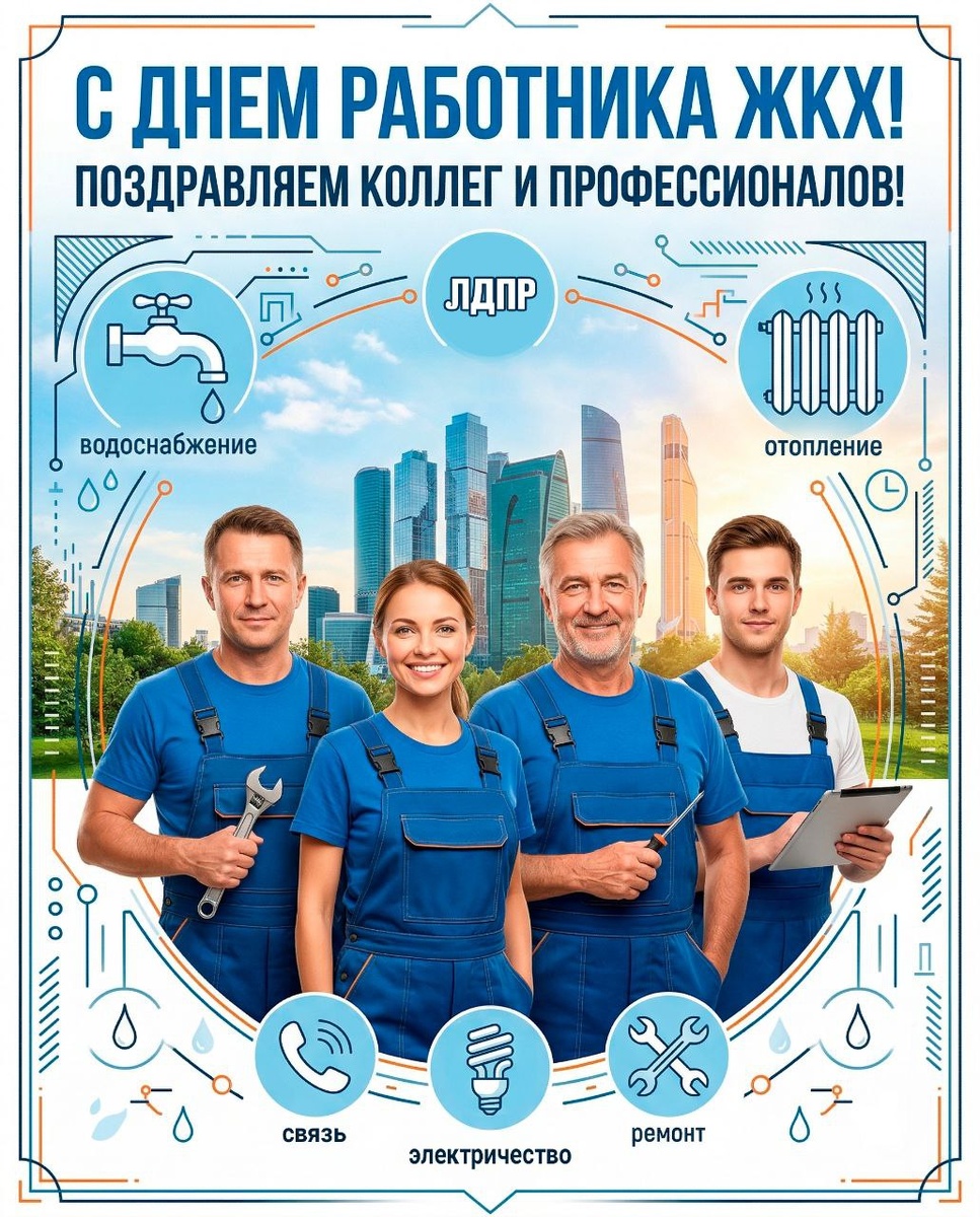! Уважаемые работники сферы жилищно-коммунального хозяйства! Псковское региональное отделение ЛДПР поздравляет вас с профессиональным праздником — Днем работника ЖКХ! Ваша ежедневная работа обеспечивает комфорт и безопасность наших домов, поддерживает чистоту улиц и дворов, гарантирует бесперебойную работу коммунальных служб. Ваш труд незаметен, пока всё работает исправно, но именно благодаря вашему профессионализму и ответственности мы можем жить спокойно и уверенно. Пусть ваш праздник станет поводом выразить благодарность и признательность за ваш вклад в общее благо. Желаем вам крепкого здоровья, успехов в профессиональной деятельности и благополучия вашим семьям.