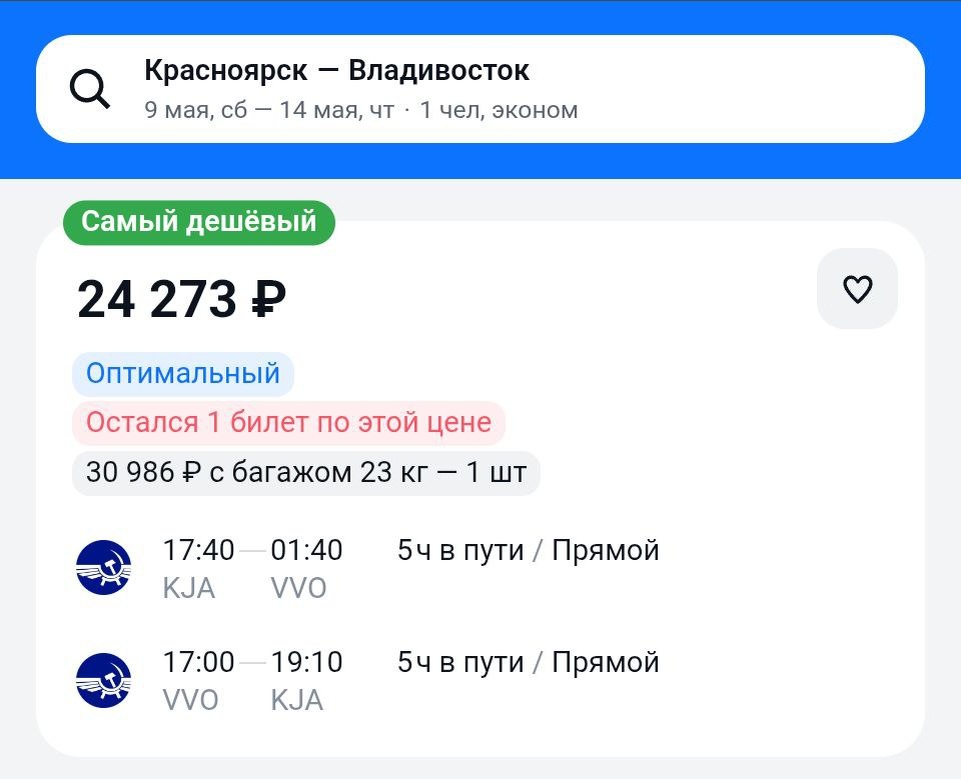 https://aviasales.tpm.lv/hgRC2XTH Это теперь хорошие цены. #VVO @KJA