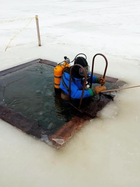 Отдельные тренировки прошли и у водолазов в городе Ярцево. Специалисты провели спуски под лёд, отрабатывая действия в условиях замерзшего водоёма.