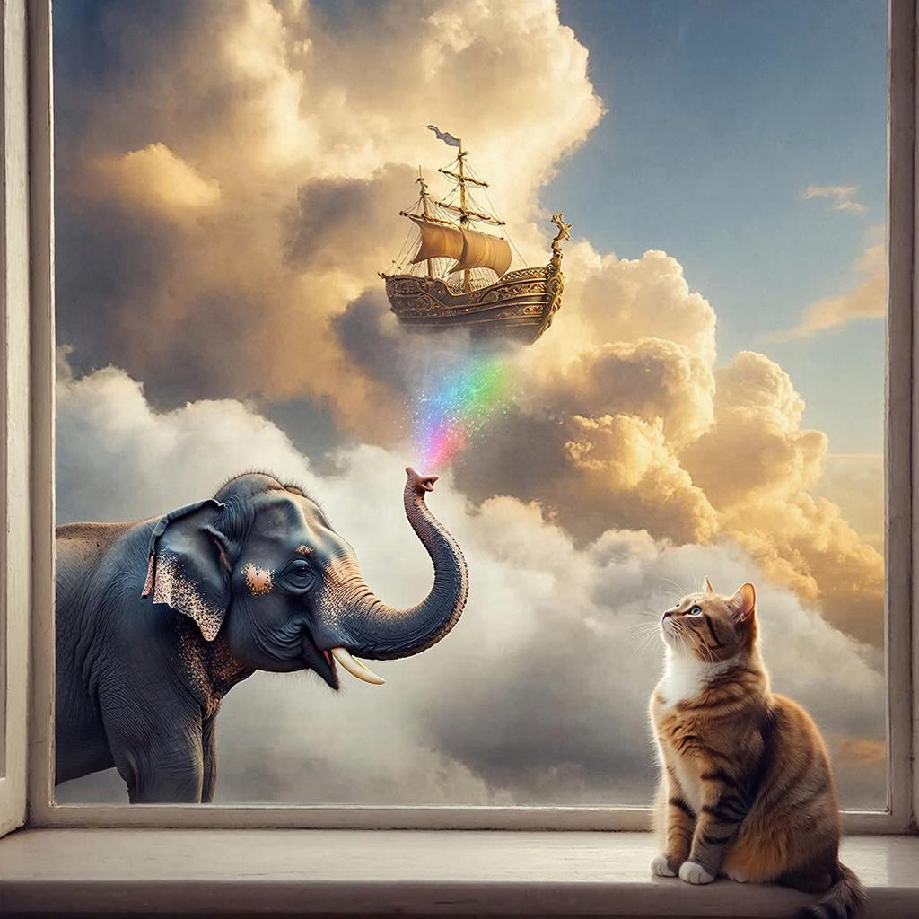 Он вдруг забыл, как двигаться. Хобот болтался сам по себе, уши покраснели (насколько может покраснеть облако), а изнутри вылетали не радуги, а какие-то смущённые искорки.