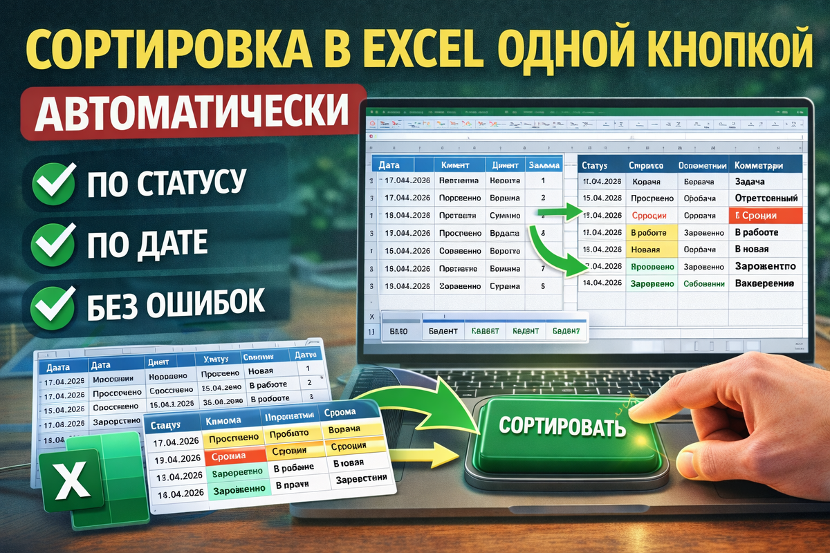 Есть очень знакомая рабочая сцена. Сначала таблица выглядит прилично. В ней десять строк, потом двадцать, потом сорок. Всё ещё терпимо. Но проходит неделя, в файл вносят новые записи, кто-то добавляет строки в середину, кто-то меняет статусы, кто-то ставит новые сроки, кто-то просто пишет данные в том порядке, в каком они пришли. И вот перед вами уже не таблица, а живая хроника офисного хаоса.
