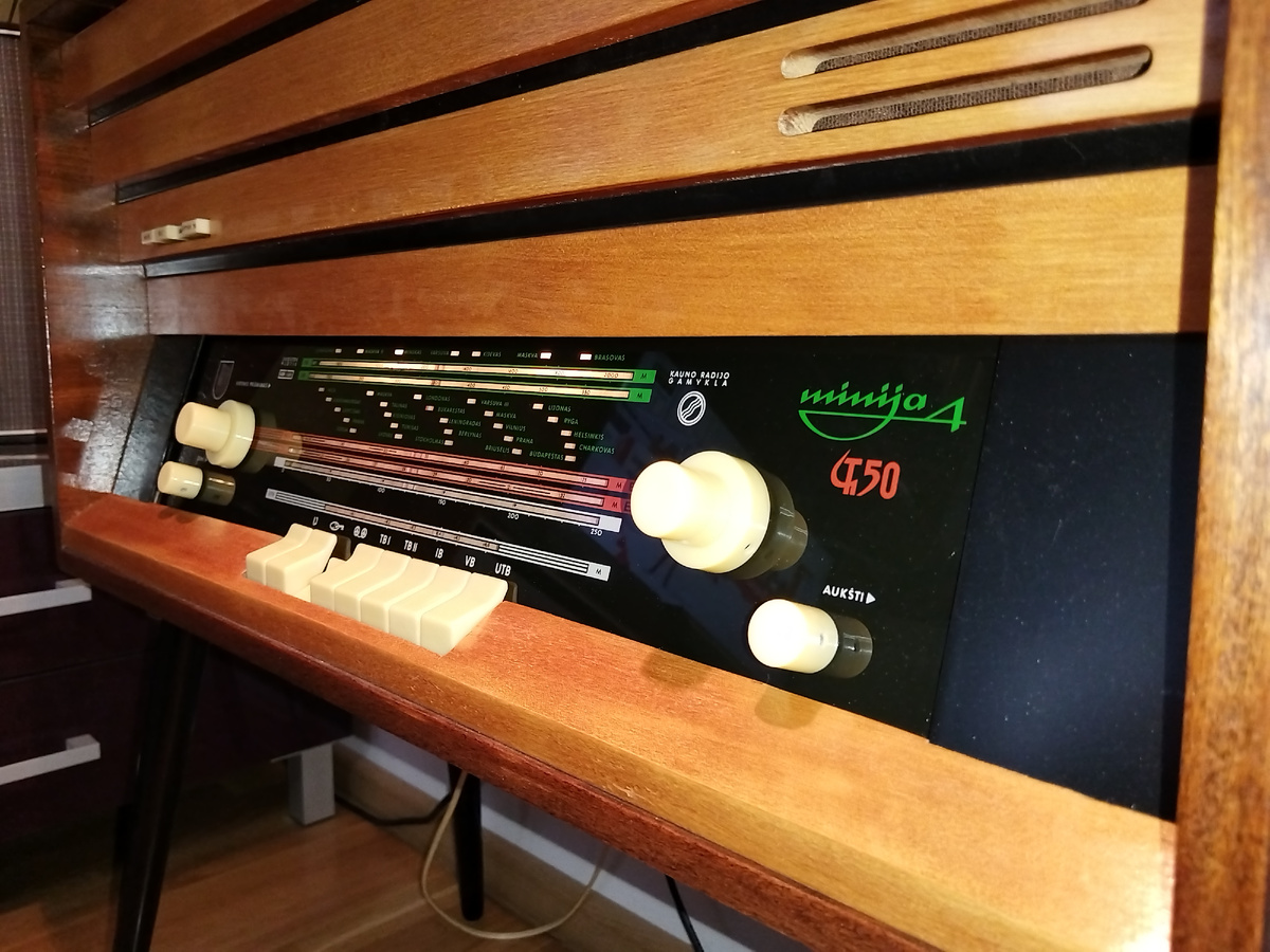 КРАСНОЯРСК, Россия - 15.03.2026. Магнитола Миния 4 уже бывала в наших руках о чем есть публикация: Катушечная магнитола "Миния-4" - блеск и шик "Эпохи застоя". И вот еще одна Minija 4 в нашей мастерской. И есть с чем сравнить, два одинаковых аппарата, на первый взгляд, но есть нюансы... Это не радиола, а магнитола, созвучно с названием устройства для автомобиля. Однако на момент выпуска нашей героини, была заведена именно такая классификация: магнитола - устройство совмещающее в одном корпусе радиоприемник, магнитофон и акустическую систему. Магнитола притягивает взгляд своим исполнением - оно очень необычное. Здесь нет ткани (как например в Ригонде), что практично с точки зрения эксплуатации. Лицевая сторона выполнена из массива дерева, покрытого шпоном ценных пород. Верхняя часть, как бы уходит в глубь на четыре ступеньки, разделенными черными глянцевыми, металлическими вставками. Справа, за фрезерованными отверстиями скрывается одна из трех динамических головок. Слева реализован тем