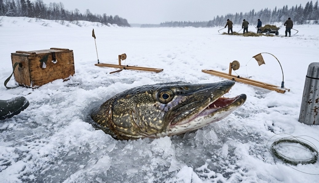 Дело было в марте, когда лёд на Печоре ещё такой толщины, что бурить замучаешься, а щука уже начинает просыпаться и звереть. Поставил я, значит, жерлицы. Сижу, чай из термоса попиваю, на облака любуюсь. И тут — бах! Флажок выстрелил так, что аж снег вокруг припорошило.