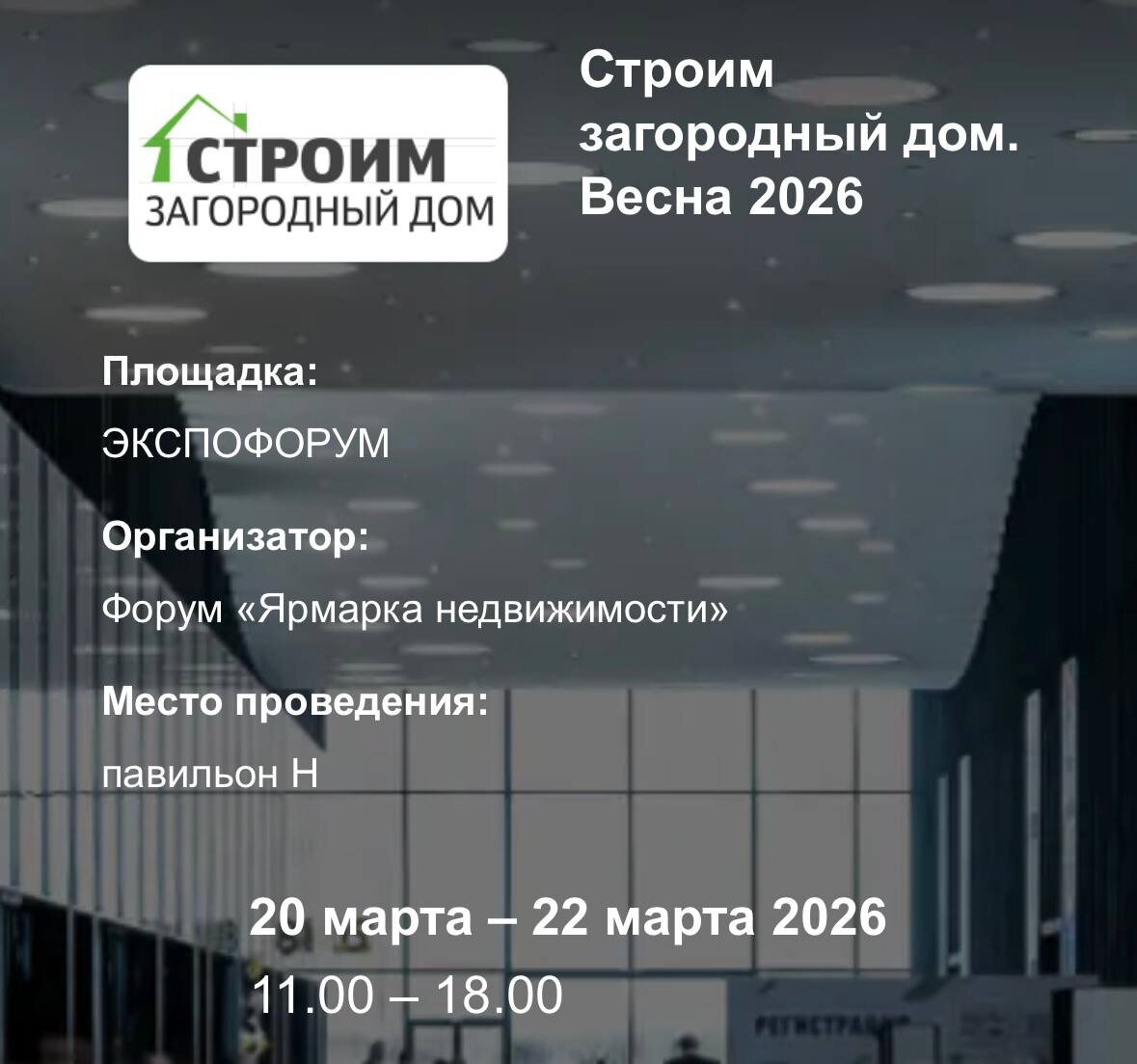 Дорогие друзья! Приглашаем вас на ярмарку недвижимости 🔗ЭКСПОФОРУМ, который пройдет 20-22 марта 🏡 Это уникальная возможность познакомиться с инновациями в сфере строительства, где проекты представит наша строительная компания Дачный рай 🏠 Мы предлагаем вам узнать больше о наших каркасных домах, которые отличает высокая энергоэффективность, скорость возведения и доступная цена. Посетив наш стенд, который находится у самого входа, вы сможете не только увидеть образцы наших проектов, но и пообщаться с опытными специалистами, которые ответят на все ваши вопросы и помогут выбрать идеальное решение для вашего загородного дома. Ждём вас 🗓️20-22 марта 11:00 - 18:00 - откройте для себя мир качественного и комфортного жилья с «Дачным Раем»! 📍Место проведения: КВЦ «ЭКСПОФОРУМ», Санкт-Петербург, Петербургское шоссе, 64/1 📞8 (921) 942-94-69 🔗Дачный Рай