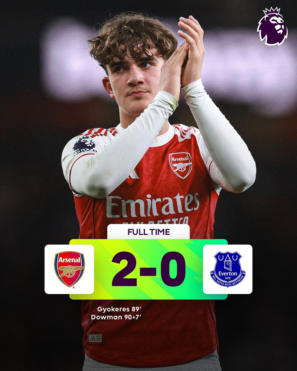 Подопечные Артеты додавили «Эвертон» в самой концовке матча. Молодое дарование «Арсенала» Макс Доуман стал самым молодым автором гола в истории АПЛ, он забил в 16 лет 73 дня.