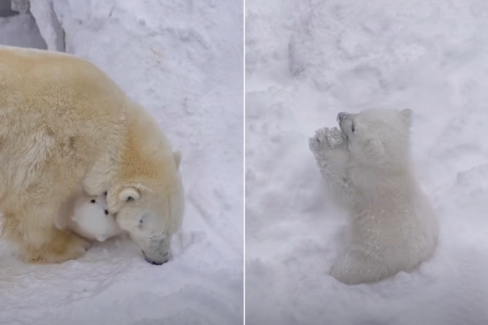 Это уже седьмой по счёту детёныш полярных медведей Герды и Кая. Новосибирские новости Новосибирский зоопарк впервые обнародовал видео с малышом, родившимся 7 декабря 2025 года. По данным администрации, первое время белая медведица не оставляла кроху одного ни на секунду и даже за едой впервые вышла лишь 26 февраля, а сейчас уже иногда выводит медвежонка на прогулки. Пол его ещё не определён — ветеринары малыша не осматривали. Пока они, как и зоологи, наблюдают за мамой и детёнышем по видеокамерам. Сотрудники отмечают, что он хорошо питается и в целом развивается в соответствии с возрастом. Проход к вольеру семейства временно закрыт — чтобы посетители не беспокоили медведицу с чадом. Видео: Новосибирский зоопарк имени Р. А. Шило Напомним, впервые Кай и Герда стали родителями в 2013 году.