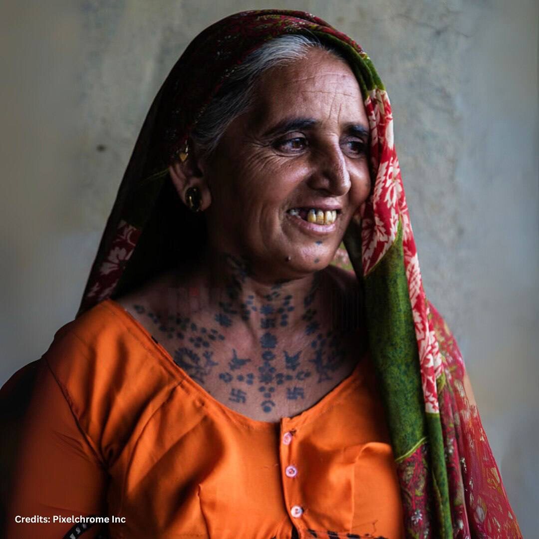 Такая традиция татуировок существовала у многих народов Индии, особенно в западных регионах - в Гуджарате и Раджастане. У некоторых племён и сельских сообществ татуировки были почти обязательной частью жизни.