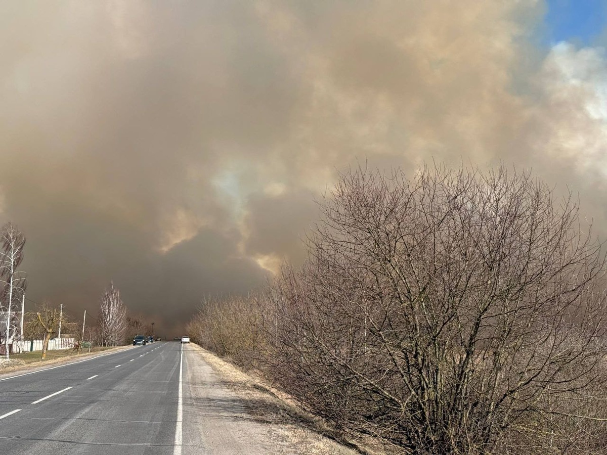 ⏩Из-за сильного ветра огонь в Пинском районе продолжает распространяться и приближается к Стытычево