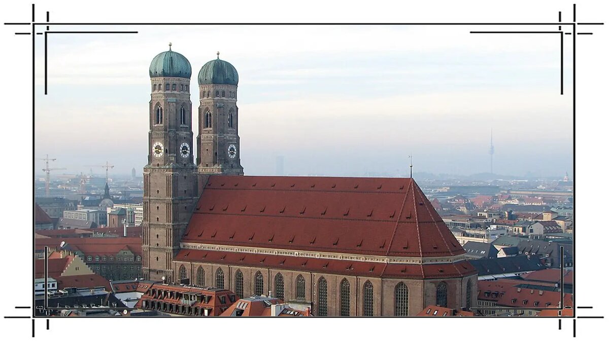 Наряду со всемирноизвестными Октоберфестом и Мариенплац (Marienplatz), есть ещё одна важная достопримечательность – одна из самых главных и известных строений баварской столицы — собор святой Богородицы, больше известный как Фрауэнкирхе (Frauenkirche). Строили его с 1468 по 1525 год. Длина этого кирпичного сооружения составляет 109 метров, ширина – 40 метров. А его высота без учёта знаменитых башен равняется 37 метрам. В опровержение давней легенды, что башни сильно различаются по высоте, в действительности они почти одинаковые. Высота южной составляет 98,45 метров, а северной – 98,57 метров.