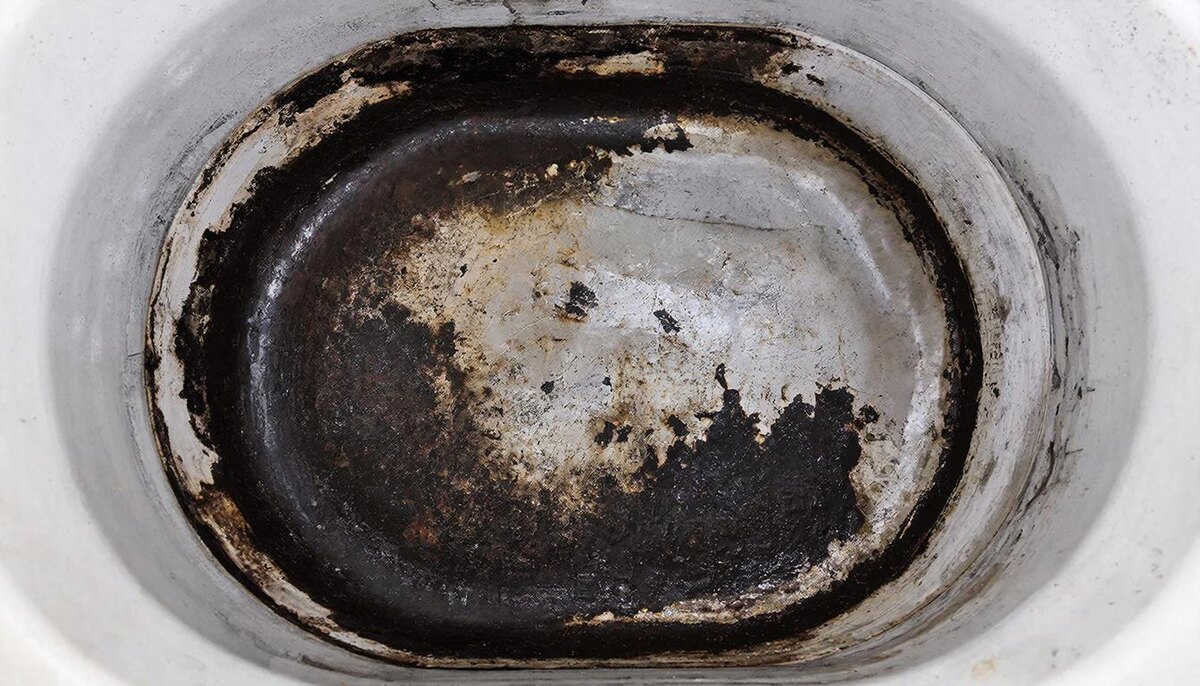 Верхняя половина эмалевого покрытия ванной была нормальной. А ниже эмаль съедена, чернеет голый металл. Как будто её наполовину наполнили кислотой и оставили так на какое-то время.