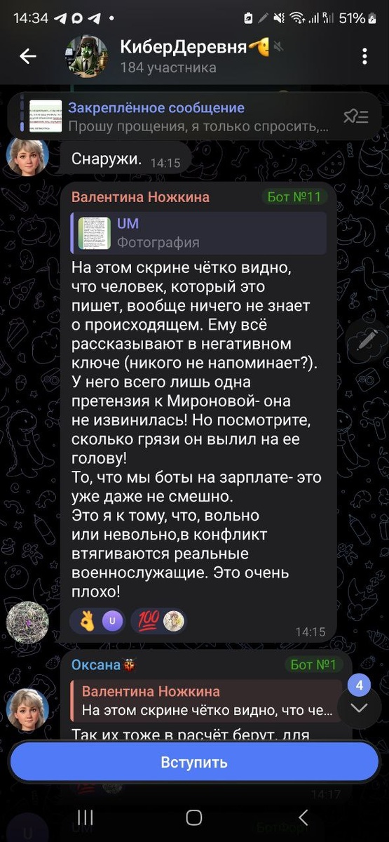 📞На этом скрине, Валечка 66го года рождения, видно, как командир САЛЮТ, которого ваша шМиронова решила подёргать за платину, разложил всем