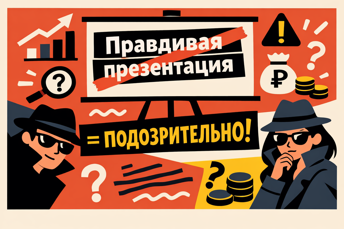 Но клиенты все равно будут воспринимать их как рекламные заявления. Например, компания пишет на слайде: «Наш сервис сокращает трудозатраты бухгалтера в 2–3 раза». Допустим, это правда и компания делала замеры. Проверяла. Сравнивала процессы. Но если показать такой слайд, человек почти всегда реагирует одинаково: «Подозрительно!» Почему так происходит? Потому что есть большая разница между правдивым текстом и достоверным текстом. Правдивый текст — это когда вы говорите то, что действительно соответствует реальности. Например: «Наш сервис сокращает трудозатраты бухгалтера в 2–3 раза». Это может быть чистой правдой. Но читатель не знает, как именно вы считали. Поэтому мозг автоматически включает защиту «Мы замерили, сколько времени бухгалтер тратит на разнесение платежа по статьям расходов при использовании Excel. В нашем сервисе тип расхода и статья определяются автоматически, поэтому бухгалтеру остается только проверить и нажать ОК. Человек