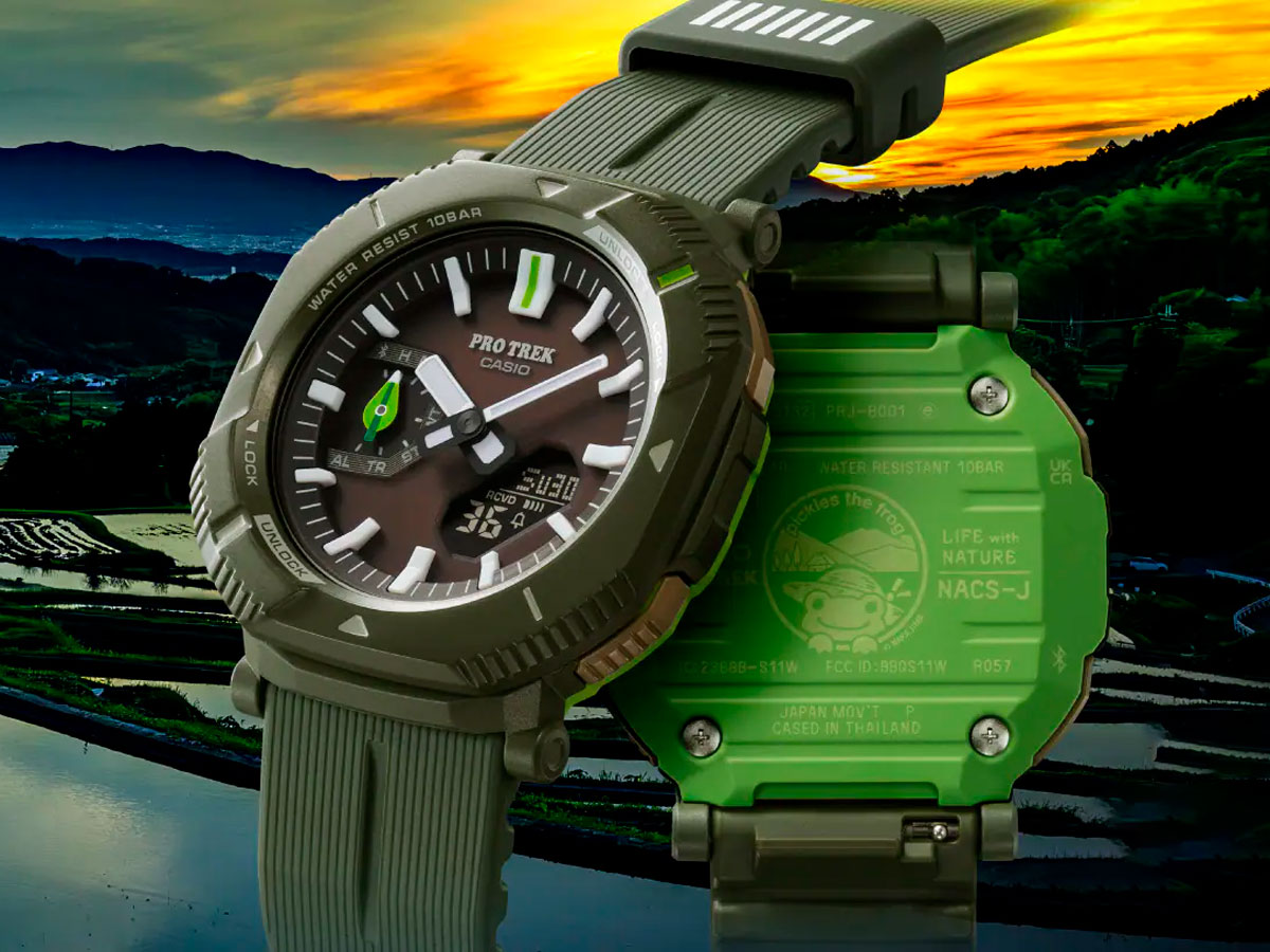 Одна из февральских новинок, которую мы еще не успели обсудить на блоге — PRJ-B001NJ-3, уже готовится к старту продаж. Часы спроектированы при содействии японского общества охраны природы (Nature Conservation Society of Japan или сокращенно NACS-J) и их знаменитого символа Pickles the Frog в виде мягкой игрушки-лягушки. К слову, это уже седьмая по счету модель сотрудничества бренда PROTREK с NACS-J с четким позиционированием — напомнить людям о необходимости сохранения природы. Узнать цены на PRJ-B001 *только официальные магазины Общество охраны природы Японии — некоммерческая организация, миссия которой в создании атмосферы гармонии человека и природы, где каждый, от ребенка до старика может счастливо жить в окружении естественной красоты флоры и фауны. NACS-J занимаются изучением, исследованием и выполняют действия по защите природных объектов Японии от горной местности до морских просторов. Вы не поверите, но у Nature Conservation Society of Japan даже есть свой «посол» под именем P
