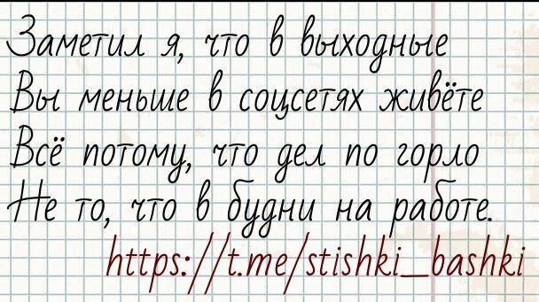 #рабочийдень #стишкиизбашки Стишок каждый день для настроения @stishki_bashki 📹 - видеостишки тут 👈 🙊 - а тут можно комментировать 👈 Поделитесь стишком с друзьями