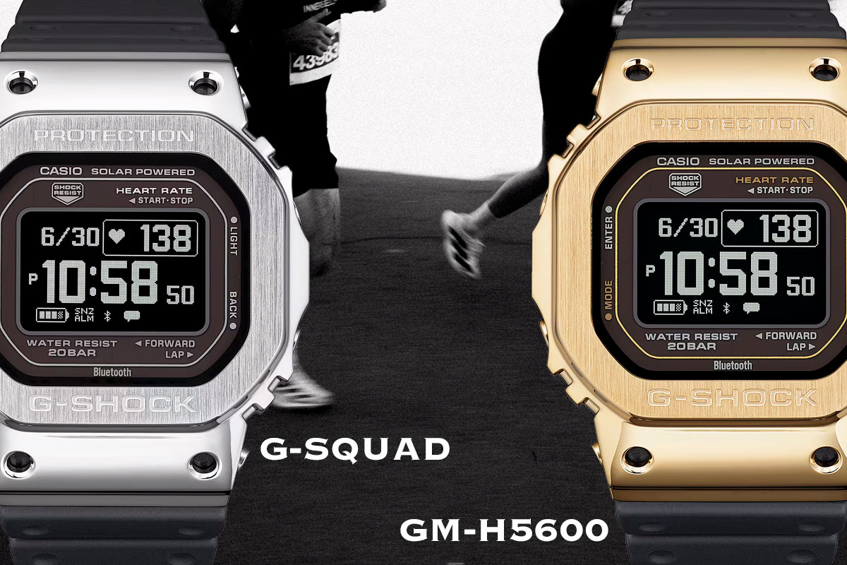 Довольно быстро японцы анонсировали GM-H5600 после нашего материала о Топ инсайдах CASIO на 2026 год, как мы и ожидали — перед нами металлическая версия DW-H5600 пульсометром, шагомером и прочими спортивными фишками, присущими линейке G-SQUAD для бегунов и других спортсменов. Серия на данный момент размещена только на сайте японского подразделения CASIO с датой начала продаж уже в марте, но в скором времени подтянутся и другие регионы, правда придется подождать еще пару-тройку недель. На первом этапе продаж будут доступны два цвета — классические стальные GM-H5600-1 и золотистые GM-H5600-9. По сути, это первые полнофункциональные беговые G-SHOCK со металлическим безелем и здесь дизайнеры компании создали прецедент — оказывается, в одном корпусе можно объединить спорт и офис без ущерба для характеристик часов. По внешнему виду безель больше похож на новомодные GMW-BZ5000, чем на GM-5600 благодаря четырем «сквозным» круглым вырезам-отверстиям. Задняя крышка, по словам производителя, сдел
