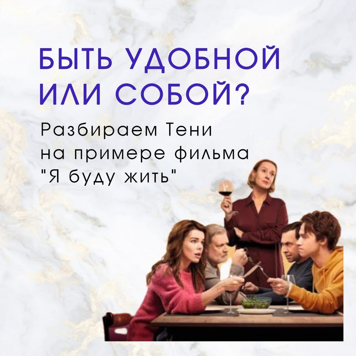 Вчера смотрела фильм "Я буду жить" и поняла, что эта история про каждую вторую женщину. Главная героиня Алла — классическая "хорошая девочка". Та самая, которая всю жизнь всех спасает, поддерживает и для всех остается удобной. Каждый день она мечется между взрослой дочерью, которая вечно в беде; сыном, мечтающим о самостоятельности, но на мамины деньги; бывшими мужьями, заходящими на обед как к себе домой; учениками с претензиями. И Алла все это тянет. Внутри нее живет знакомая многим Тень "удобного человека". Эта Тень проявляется с детства, фразами, вшитыми в голову: не будь эгоисткой, а о других ты подумала, не конфликтуй, сначала помоги остальным, а потом — если останутся силы — вспомни о себе. В какой-то момент героиня фильма осознает, что жила для кого угодно, только не для себя. Это её ломает. Алла решается на радикальный шаг: говорит семье, что смертельно больна. Так ее Тень "эгоистки, бунтарки" старается ее защитить от депрессии и реальных проблем со здоровьем. Тут-то и на