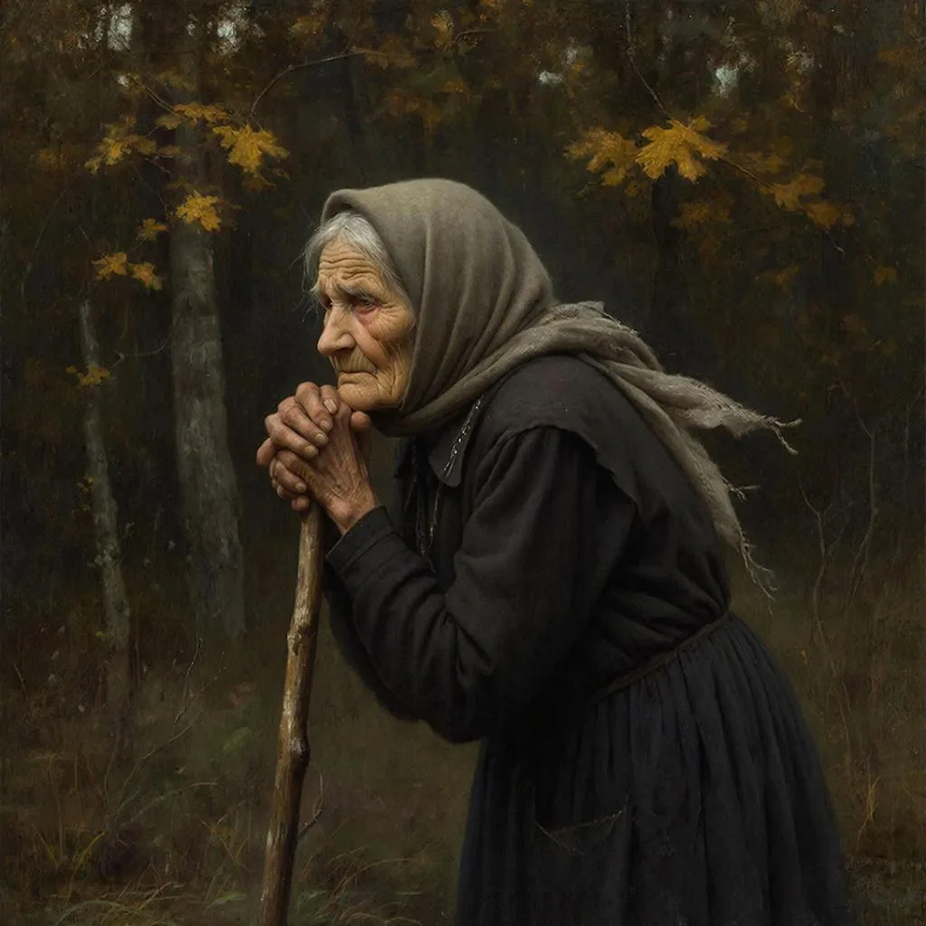 Однажды она сама вышла из леса навстречу, стояла на опушке - чёрная, сгорбленная, опираясь на клюку, и смотрела из-под платка. Братья, хоть и привычные, всё равно поёжились.