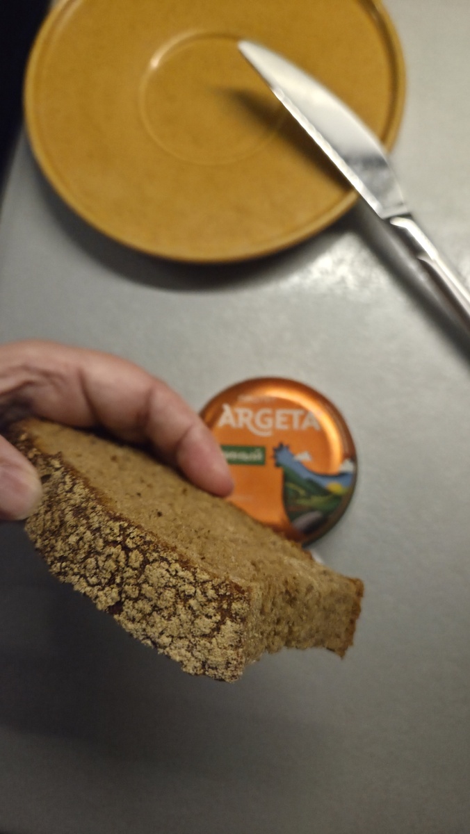 Какой-то вторник подряд у меня - бутерброд. Мы заезжали в гипермаркет, в котором собственная пекарня. Тот же, откуда булка за 120 рублей. В этот раз взяли Чусовской, за 48 рублей. Но он ничуть не хуже. Мягкий, упругий и очень вкусный. Вообще мы туда заезжаем за варениками с картошкой их производства, уж больно они хороши. Заодно берём по порции салата готового и хлеб-это чтоб мне не заморачиваться с готовкой, а сразу по приезду разобрала пакет и можно кушать. Но в этот раз вареников не было, довольствовались салатом и хлебом. Целую буханку мы не съели, поэтому на утро решила, что надо успевать пользоваться свежестью хлеба. Ну и паштет уже долго лежит в холодильнике, так что пойдёт в дело. Смотрите, какая приятная текстура Я постаралась высокохудожественно намазывать паштет) В перерывах между подходами к кофеварке. Получилось достаточно ровно))) И ещё сегодня, 17 марта, День святого Патрика🍀 и день гречневой каши🥣 в России Доброе утро 🌄 И пусть у вас всё получится! Мой телегр