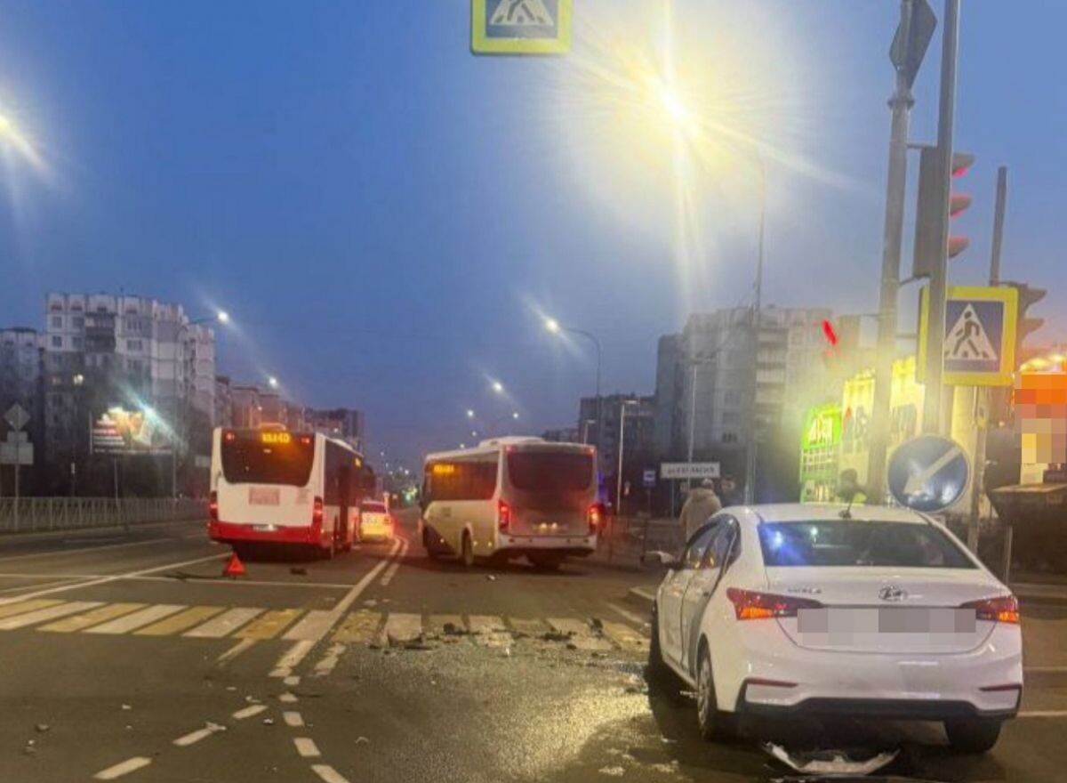 В Калининграде маршрутка проехала на зеленый и сбила легковушку: двое пострадавших