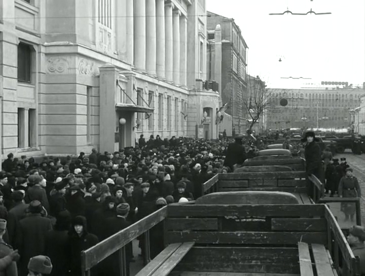 Итак, в 6 часов утра 6 марта 1953 г. по московскому времени стране было объявлено, что прощание с телом т. Сталина начнётся в 16:00 в Колонном зале Дома Союзов.