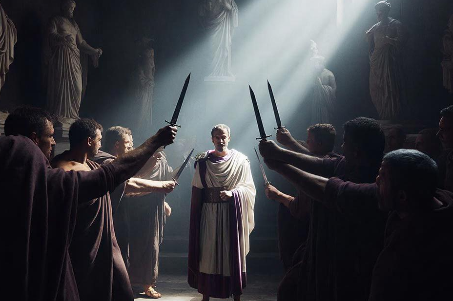 Когда Цезарь рухнул к подножию статуи Помпея, его кровь залила мраморный пол. Тело конвульсивно содрогалось, но дух уже покинул этот мир, разорванный на части руками тех, кого он возвысил .