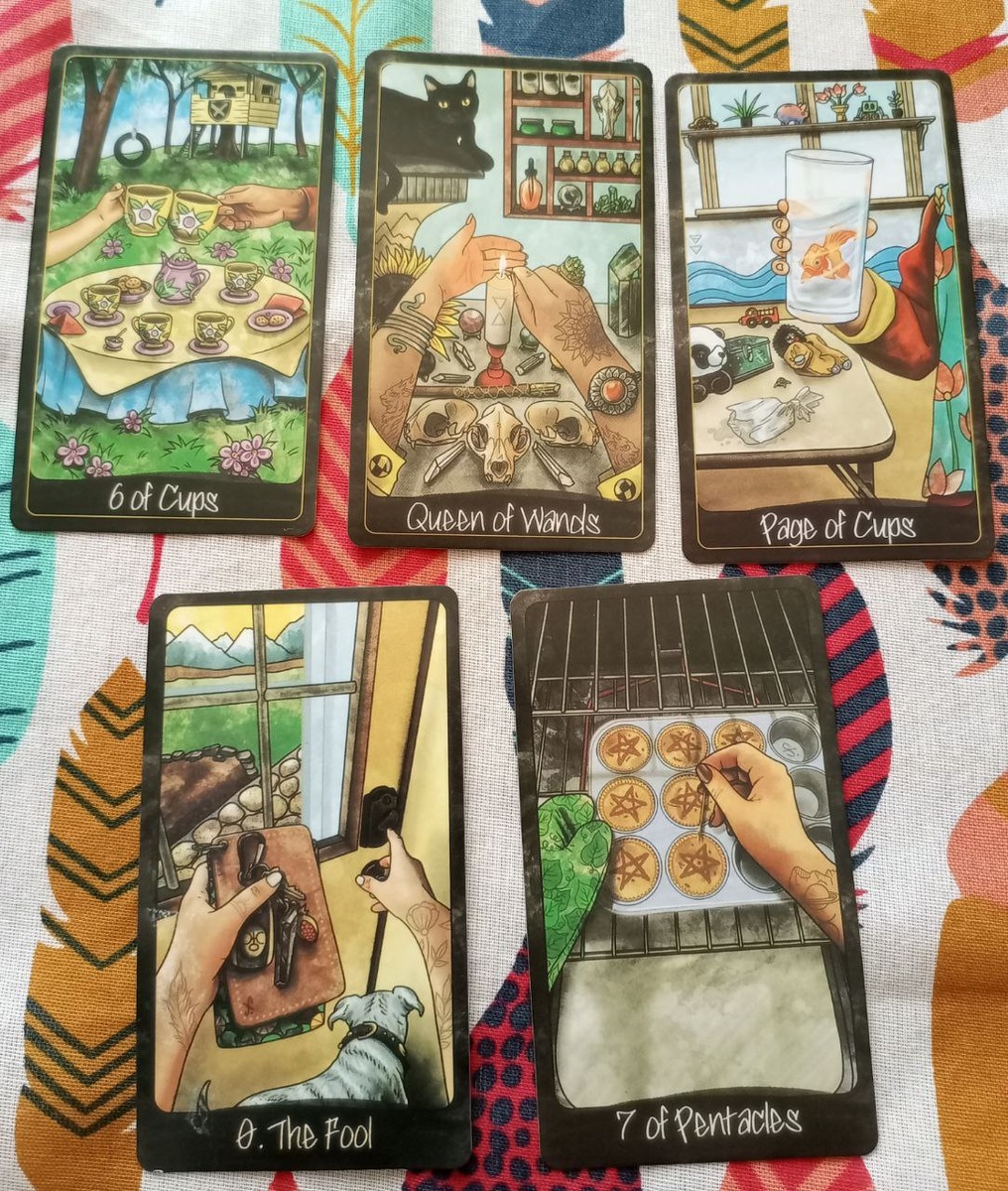 Твои карты сложились в очень интересный и многогранный сценарий. Давай разберём, что же сейчас находится в твоих руках — осознанно и скрыто, что даёт силу, а что тянет вниз. Позиция 1. Видимое — 6 Кубков Что я осознанно несу в этот мир. Ты держишь в открытых ладонях нечто тёплое и знакомое. 6 Кубков — это энергия воспоминаний, ностальгии, простых радостей и заботы. Скорее всего, окружающие видят тебя человеком, который хранит верность старым связям, поддерживает семейные традиции или занимается делами, связанными с прошлым опытом. Это может быть проект, который берёт начало в детстве, или помощь тем, кто младше/старше тебя. Ты щедро делишься уютом и душевным теплом, возможно, даже немного идеализируешь настоящее, опираясь на приятные образы из прошлого. Это то, что ты демонстрируешь миру без страха. Позиция 2. Скрытое — Королева Жезлов Что я прячу или не хочу отпускать. А вот внутри твоего кулака зажата настоящая тигрица. Королева Жезлов — это огонь, страсть, амбиции, желание быть лид