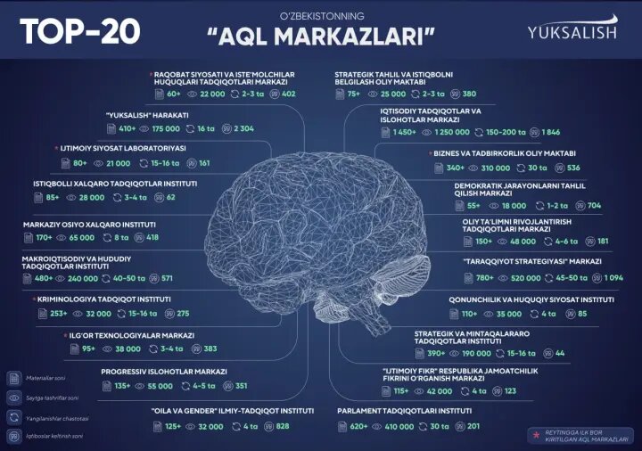 Как уточняется, данный рейтинг используется для оценки потенциала научно-аналитических центров, действующих в Узбекистане, а также их активности в работе с общественностью. Оценка формируется на основе открытых данных, что позволяет сопоставлять деятельность различных структур по единым критериям и анализировать уровень их публичной и экспертной активности. Включение в число наиболее активных центров означает, что институт был отмечен не только с точки зрения научного потенциала, но и в контексте участия в общественно значимой аналитической работе.